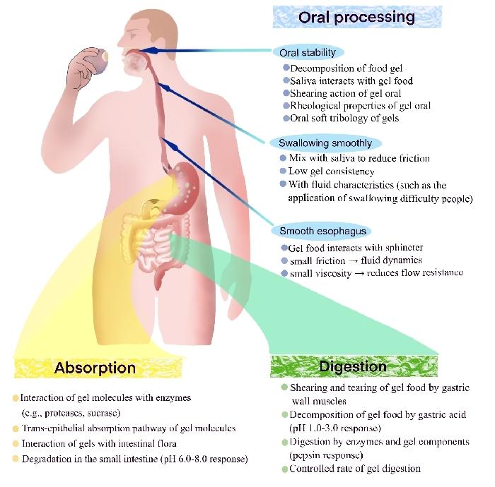 该工作从食品凝胶的形成机制、功能特性、应用现状、存在的问题、面临的挑战等多方面全面回顾了国内外食品凝胶的研究进展。首先,总结了基于水凝胶的食品凝胶形成机制,物理、化学和生物交联是凝胶形成的主要交联方式,而且一种食品凝胶中往往存在多种交联方式,这种交叉交联体系为新型食品形态设计提供了丰富多样的思路。其次,讨论了凝胶在食品智能包装、智能保鲜、营养递送、新鲜度检测、色素吸附、食品安全监测等主要领域的应用现状和存在的问题。然后,分别从未来新型食品设计、食品成分和基质之间的机制、食品凝胶与人体的相互作用以及食品凝胶的安全性等方面讨论了未来食品凝胶研究的关键科学问题,指出虽然凝胶在食品领域发挥着重要的作用,但食品凝胶的研究仍然处于起步阶段,尤其是食品凝胶在人体的代谢、吸收机制以及与人体多器官、肠道菌群之间的相互作用等将会是以后研究的难点和焦点。最后,提出构建更健康、更营养、更安全、更有益于人体需求的新型食品凝胶是今后的发展方向。此外,在跨学科研究和不同有效策略的优势结合下解决食品凝胶的关键问题(如食品成分与食品凝胶的相互作用,食品凝胶与人体的作用等),从而提高食品凝胶的专业性和营养性,将有望激发不同的创新理念,为未来食品凝胶发展提供新的研究思路。