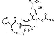 化学名称:(6R,7R)-7-[2-呋喃基(甲氧亚氨基)乙酰氨基]-3-氨基甲酰氧甲基-8-氧代-5-硫杂-氮杂双环[4.2.0]辛-2-烯-2-羧酸。(1RS)-1-乙氧基乙酯。