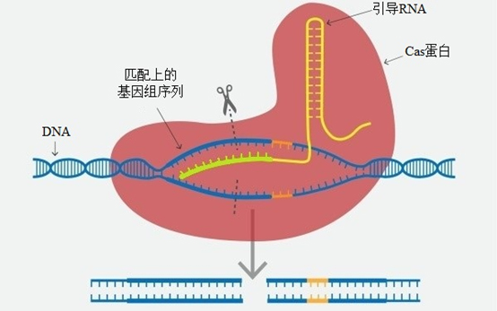 我们今天着重讲一下从源头抓,就是基因编辑技术。它与我们常听的转基因育种技术完全不同,这个操作不转入 “别人家的”基因,只是对作物内部存在的基因进行修饰,比如敲除一些“不良基因”。目前应用最为广泛的基因编辑技术非CRISPR/Cas9莫属了。CRISPR全称为clustered regularly interspaced short palindromic repeats,是细菌中成簇存在的具有规律间隔的短回文重复序列,是细菌通过切割双链DNA使其断裂而获得性免疫抵抗病毒入侵的有效手段;Cas为CRISPR associated protein,即CRISPR相关蛋白,本质是一种DNA内切酶。图2为大家简单介绍了一下原理:CRISPR是那段绿色序列,与某个基因组序列匹配上了,Cas蛋白在识别序列的旁边把DNA分子切断,而后生物体会启动DNA双链断裂修复机制,这个机制一般会导致断口处少一部分,就会导致此处的基因被破坏,那么也就达到了基因敲除的目的。打个比方,就好比是警察按照指纹,严格匹配到嫌疑犯,而后将其抓获(切断DNA),这大概就是CRISPR/Cas9的原理。