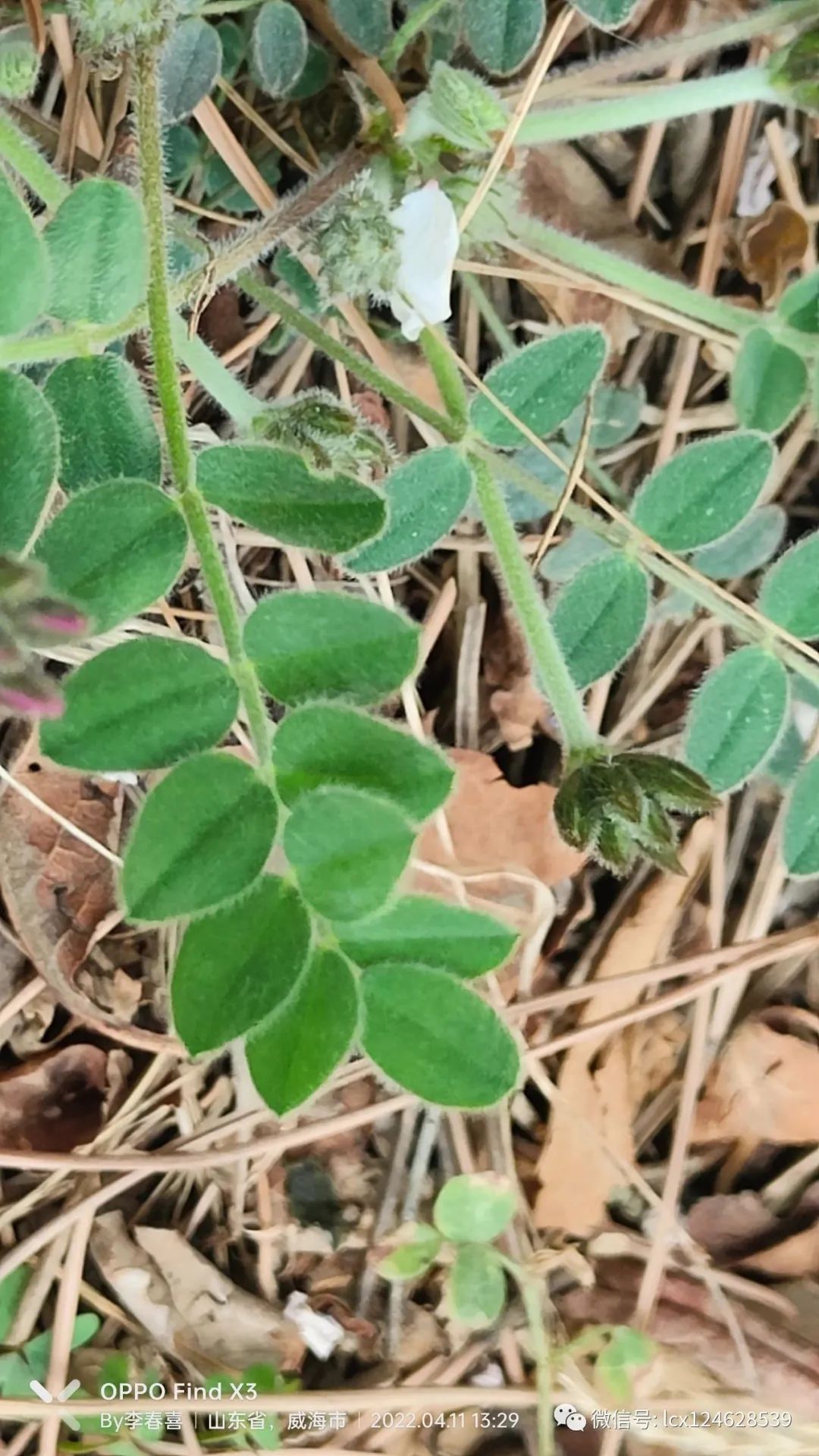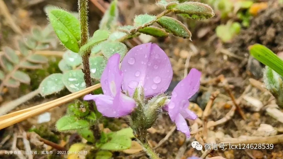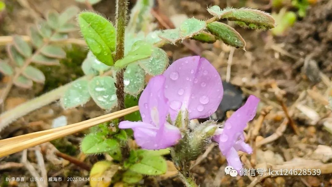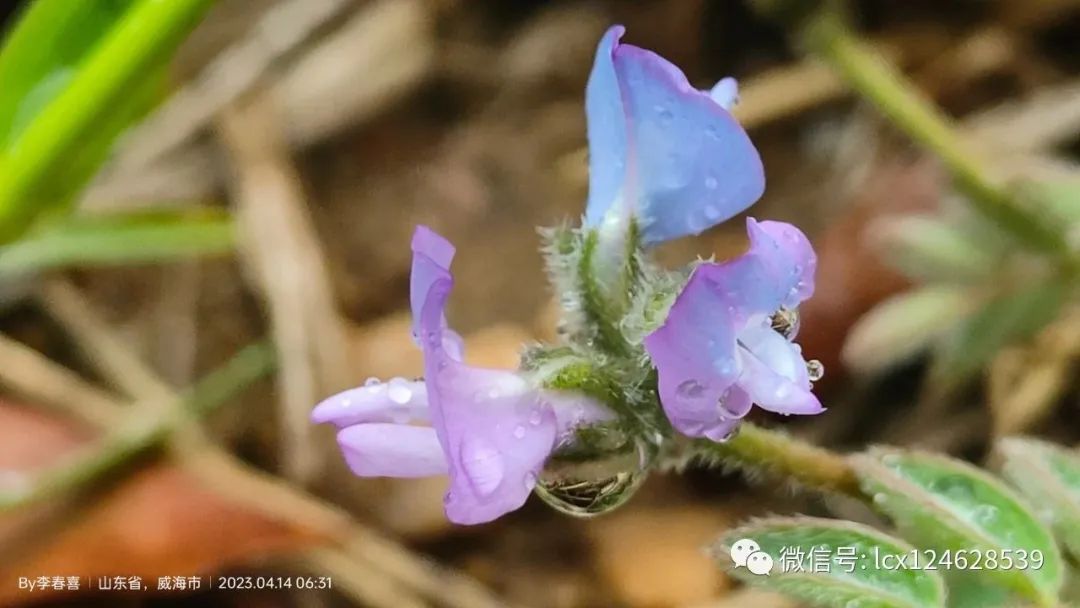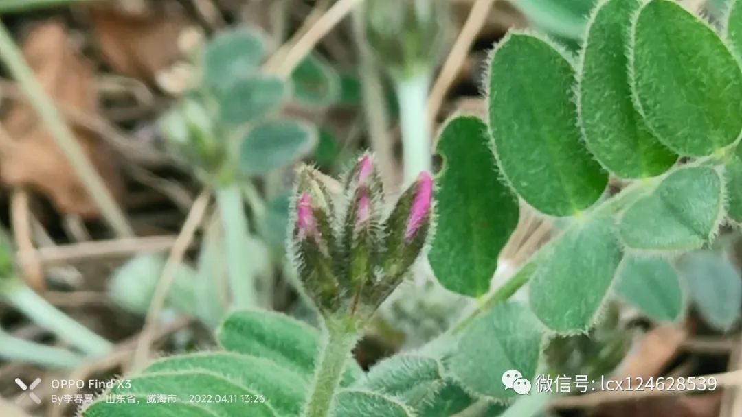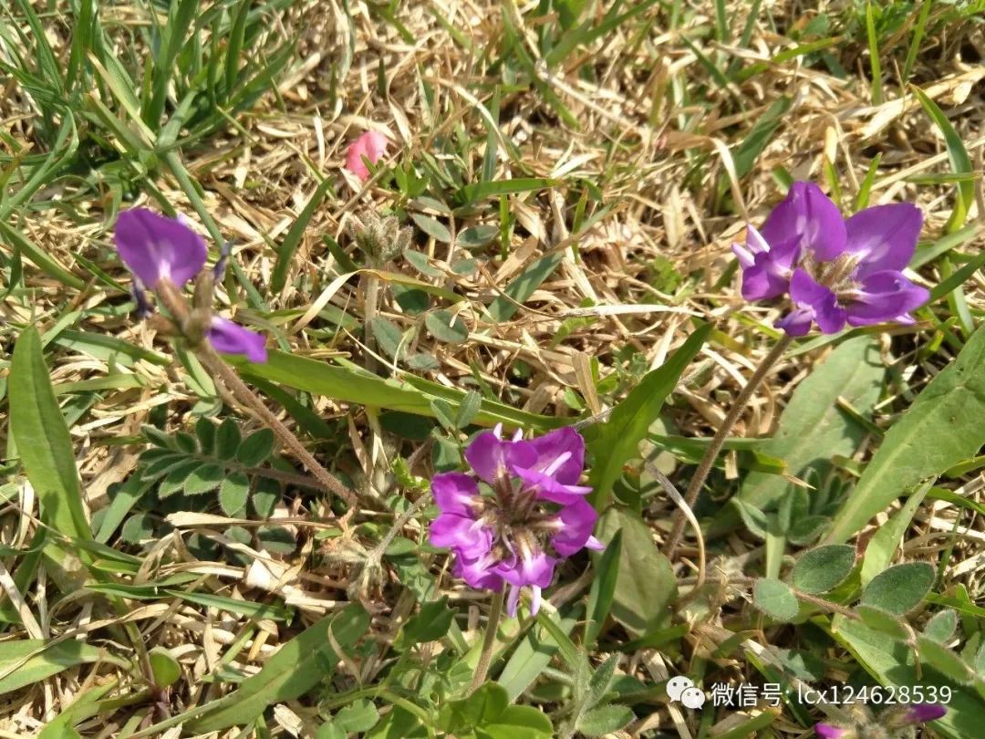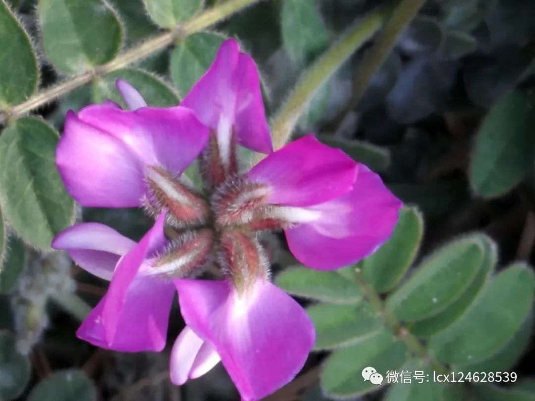 3、花梗具纵沟,被长毛,比叶稍长;5萼齿花萼被长毛,花冠紫色、白色或杂色,旗瓣倒卵形,翼瓣斜长卵形,龙骨瓣卵形。