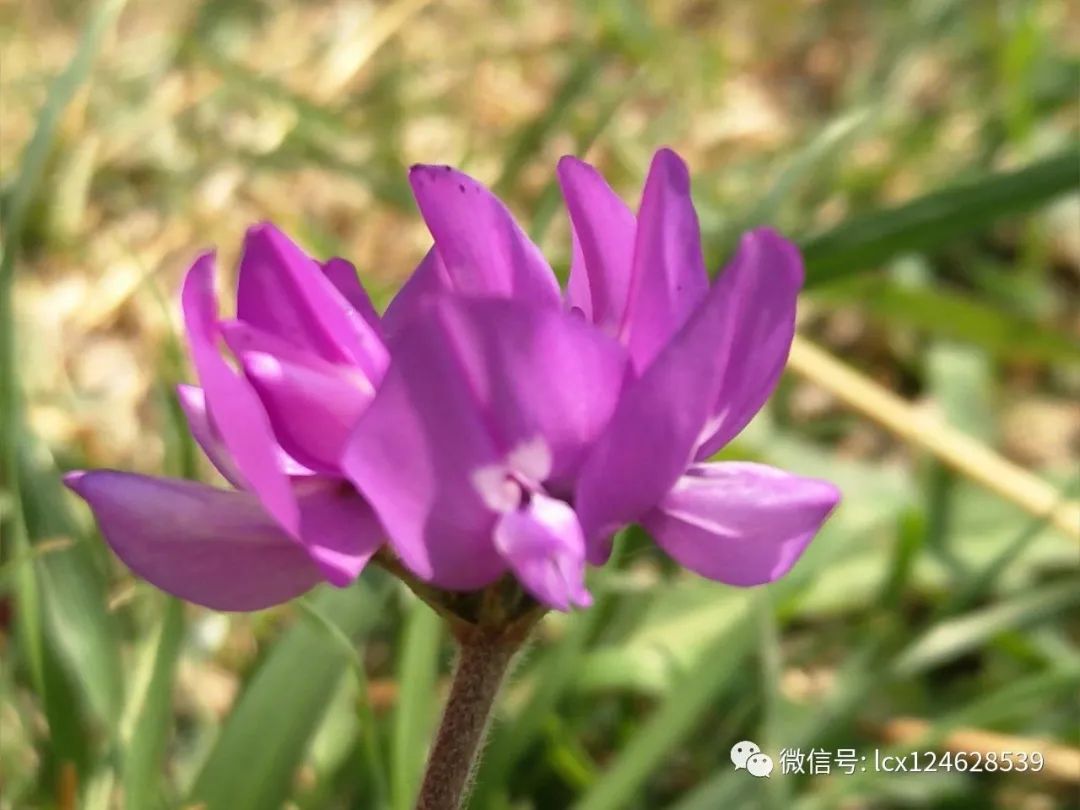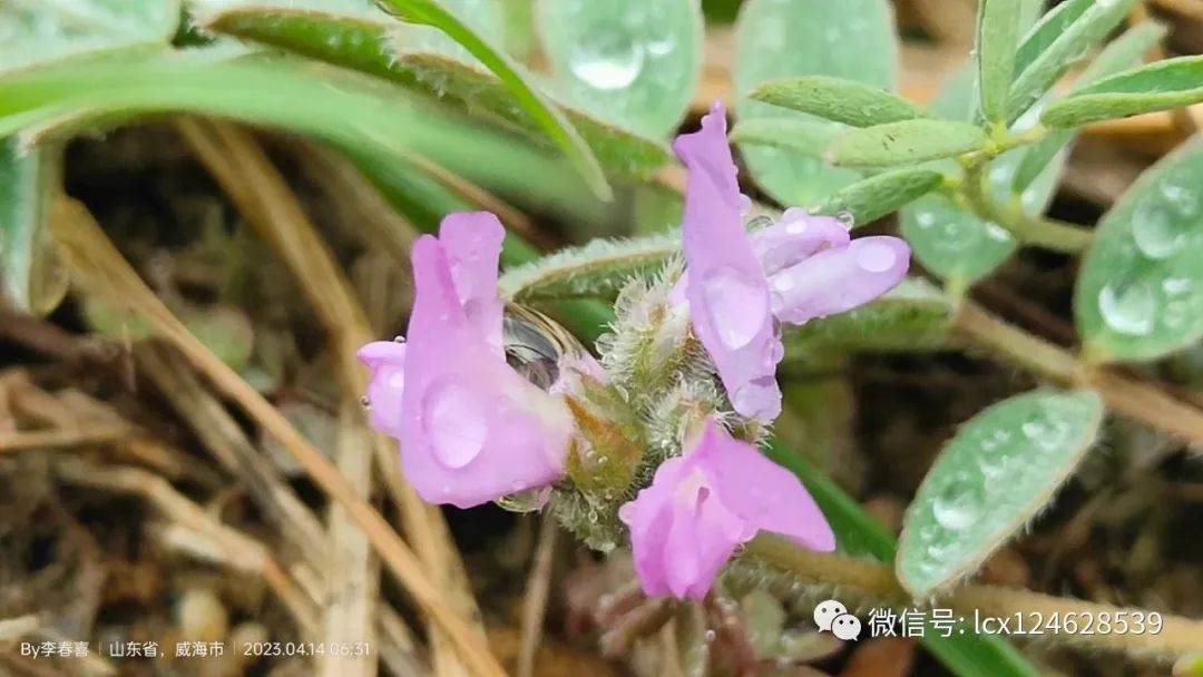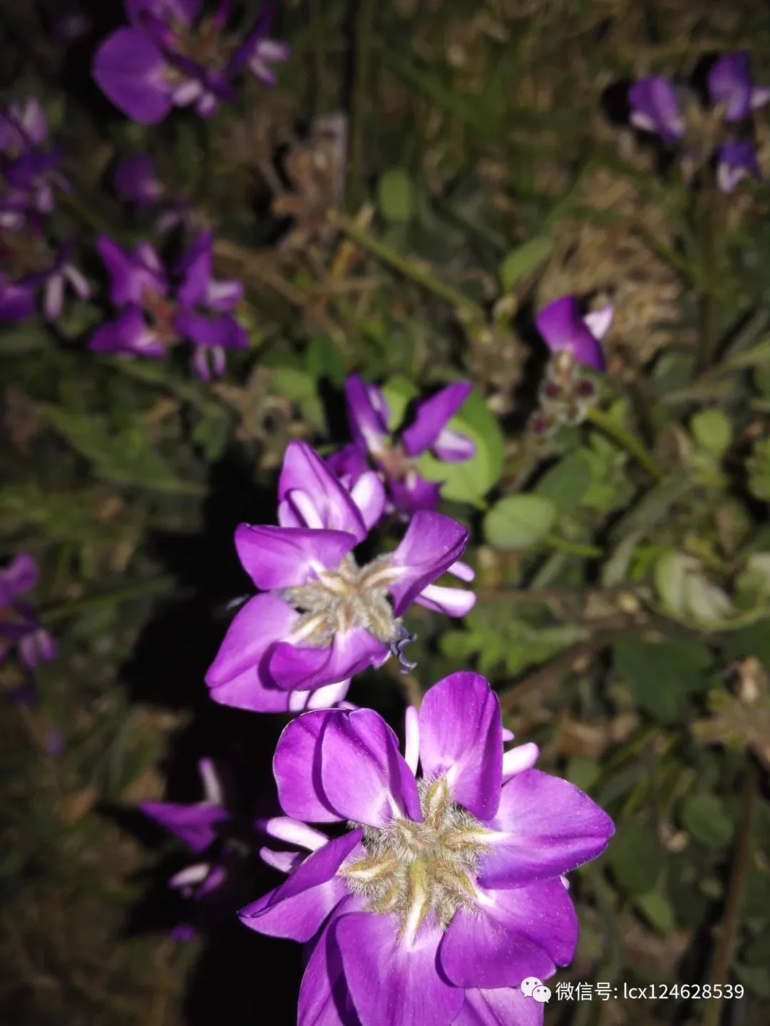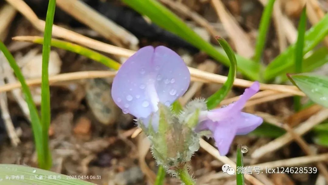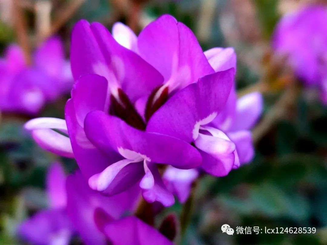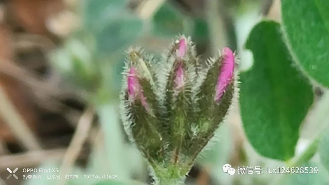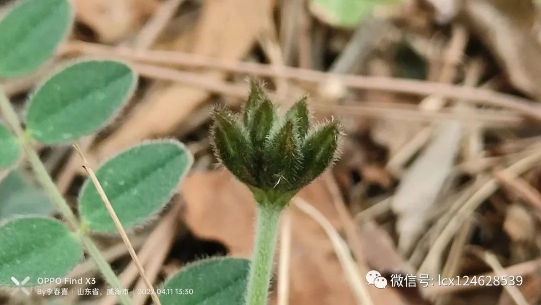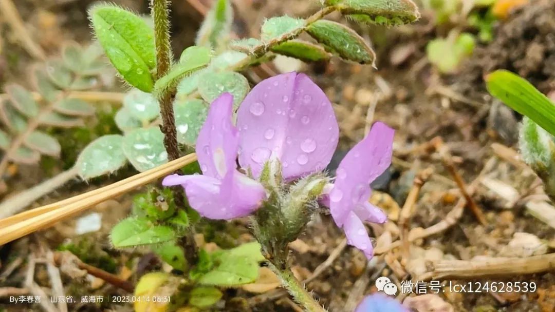 3、花梗具纵沟,被长毛,比叶稍长;5萼齿花萼被长毛,花冠紫色、白色或杂色,旗瓣倒卵形,翼瓣斜长卵形,龙骨瓣卵形。