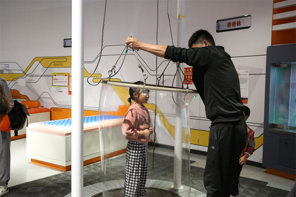 在展厅,“展品体验+趣味活动”的形式同样深受公众喜爱,不仅能够通过各类展品学习科学知识,还能参与加油向前冲、家庭知识问答赛、科学小能手等活动,以家庭为单位完成科学挑战,携手家长共同营造学习科学的良好氛围。