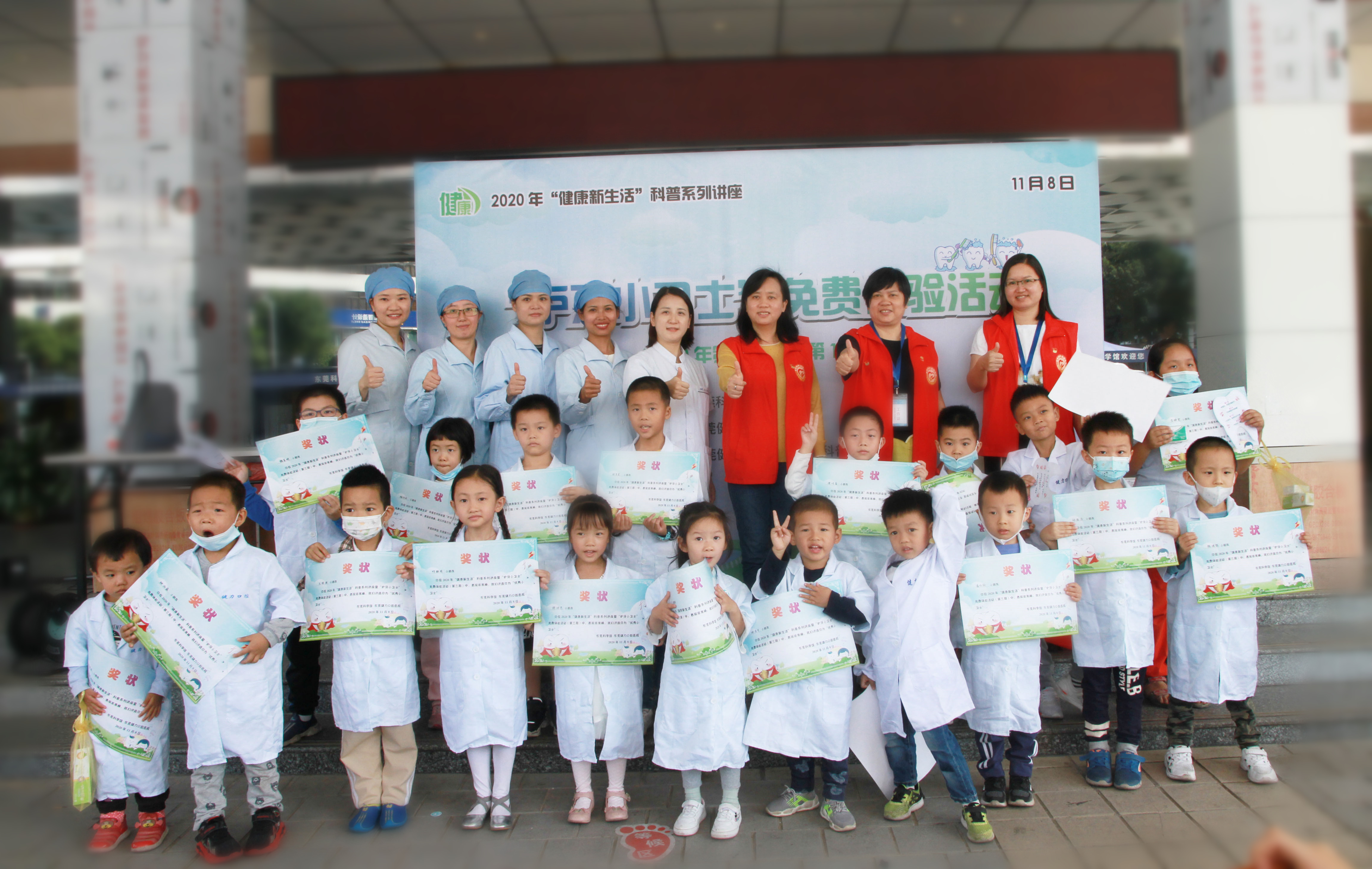2020年11月8日,由东莞科学馆主办,东莞健力口腔医院承办的2020年“健康新生活”科普系列之“护牙小卫士”免费体验活动在东莞科学馆正门顺利开展。东莞健力口腔医院作为东莞市科普教育基地,本次安排了宣教团队现场为众多家长与儿童普及口腔健康知识。