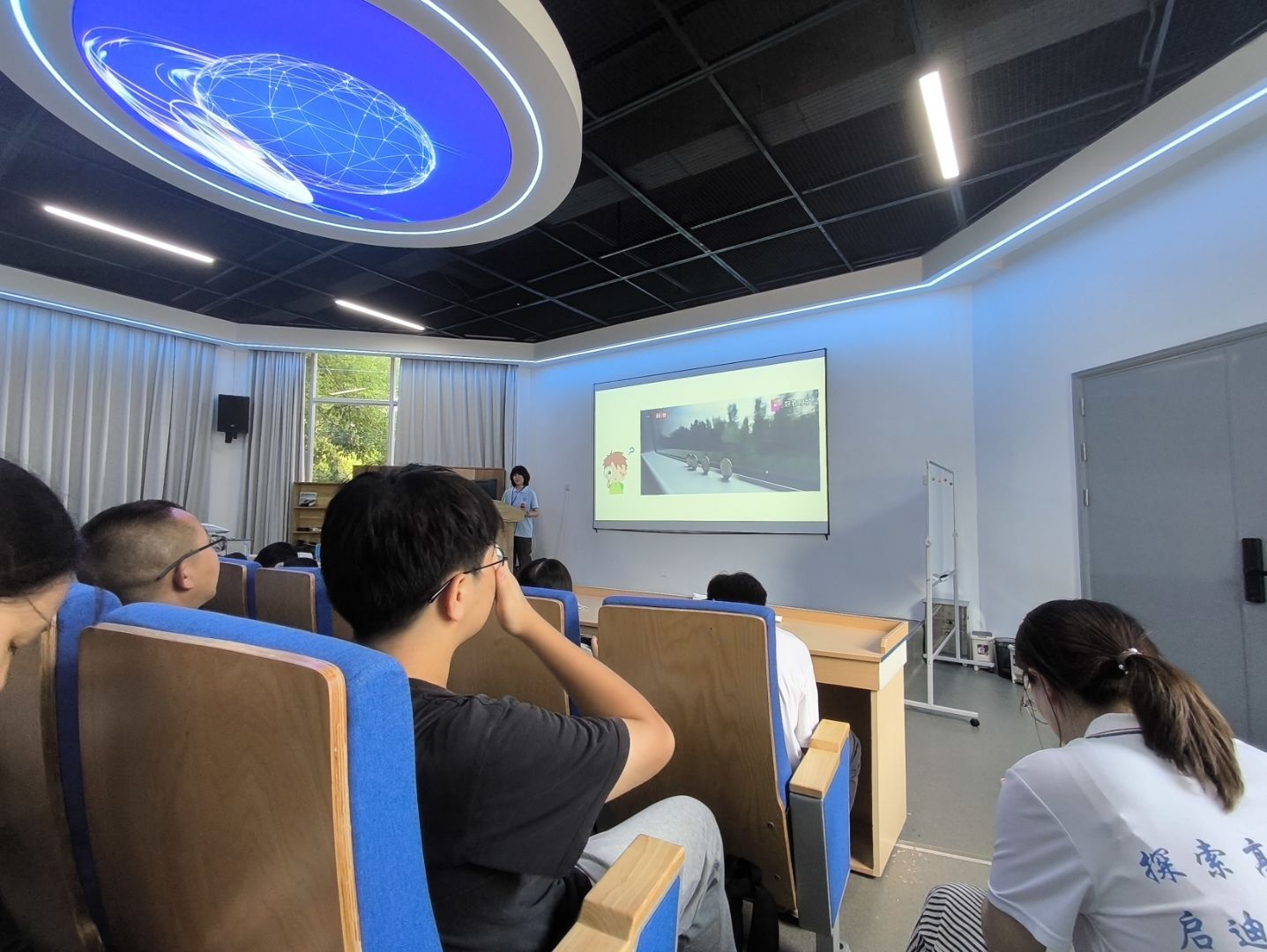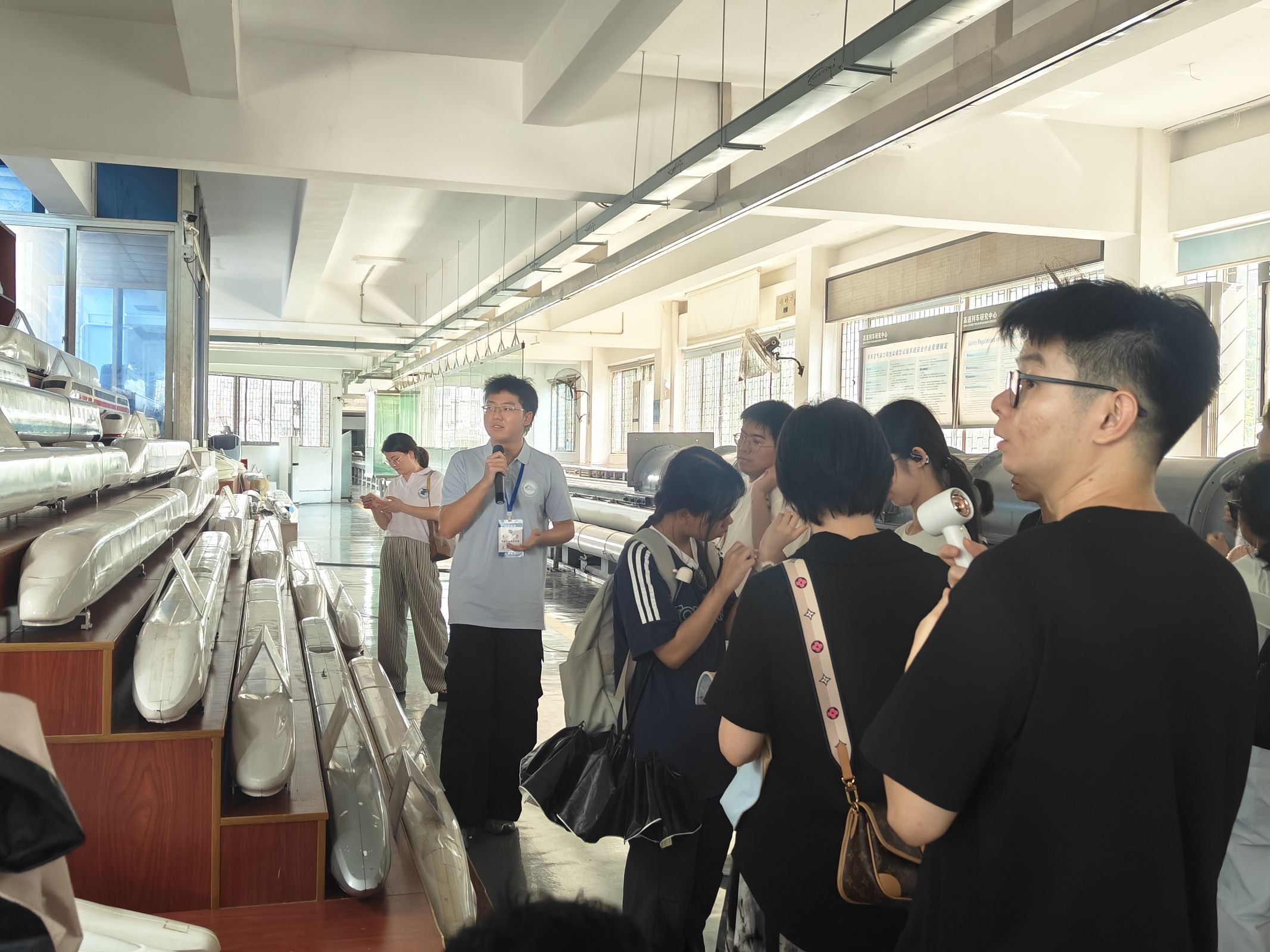 在气动实验室,史梓含介绍了列车的空气动力学知识,让同学们明白了列车气动减阻降噪设计原理和应用。而在碰撞实验室,重点讲解了防爬装置和吸能装置以及这些装置在列车被动安全保护中的作用。同学们认真聆听,积极提问,与志愿者们互动频繁,展现出对轨道交通知识的浓厚兴趣。