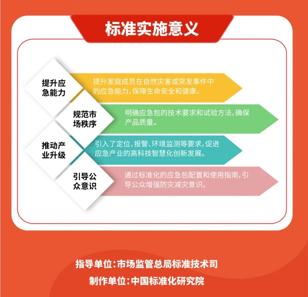 新版《家用防灾应急包》国家标准的发布,标志着我国在家庭应急物资储备方面的标准化建设迈上了新台阶,有利于规范家用防灾应急包的生产和使用,为普通百姓在面对自然灾害或突发事件时提供更加科学、有效的应急保障,做到“未雨绸缪,有备无患”。