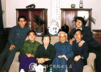 周培源在寓所与亲自指导的最后一批研究生合影(1986年)
