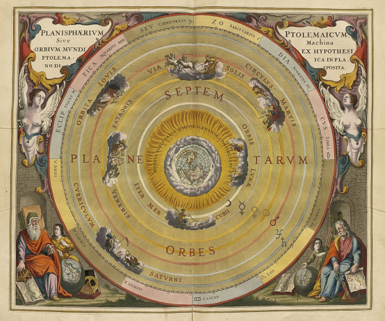 托勒密所说的地心宇宙(图片来源:维基百科)