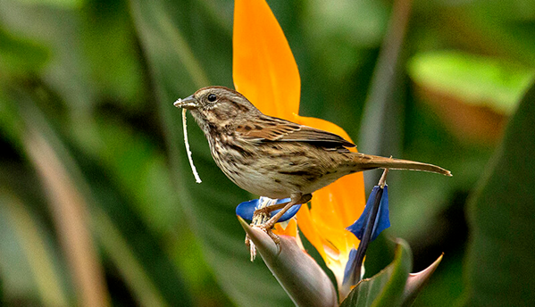 通过这种方式,鹤望兰可以将花粉附着在小鸟的胸或足进行传播。而当传粉的鸟类飞走时,开放的花瓣没有受到压力,瞬间通过其弹性机制重置回封闭状态。