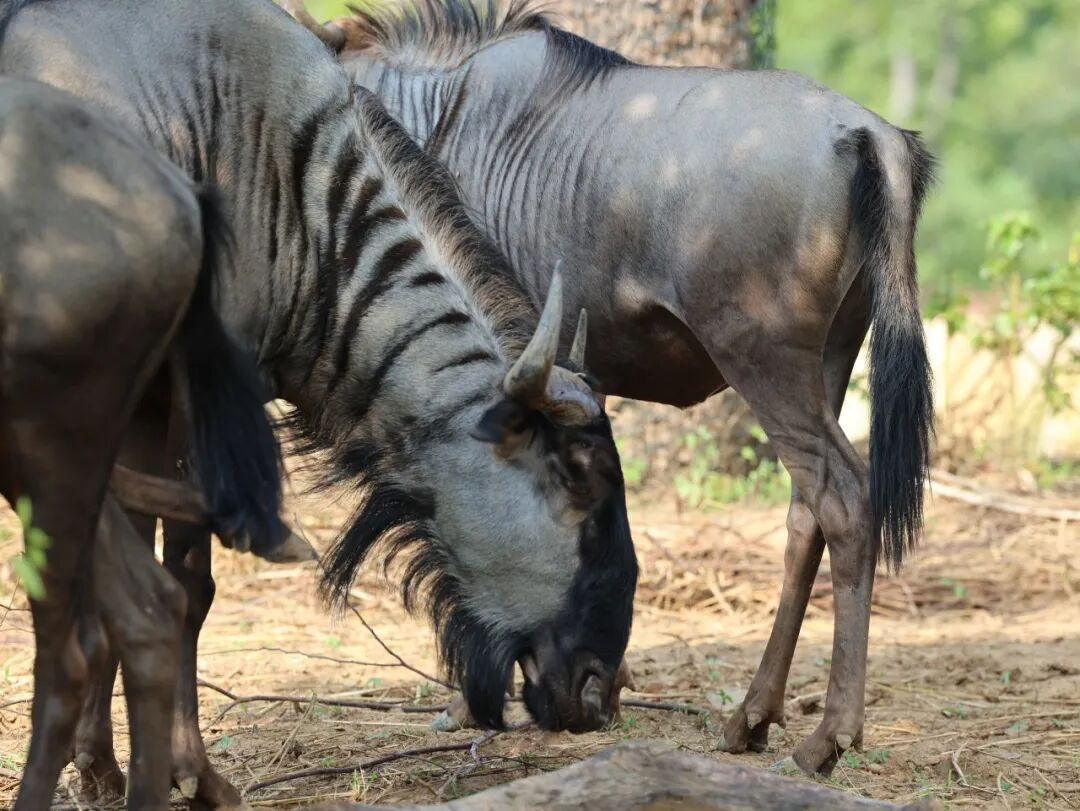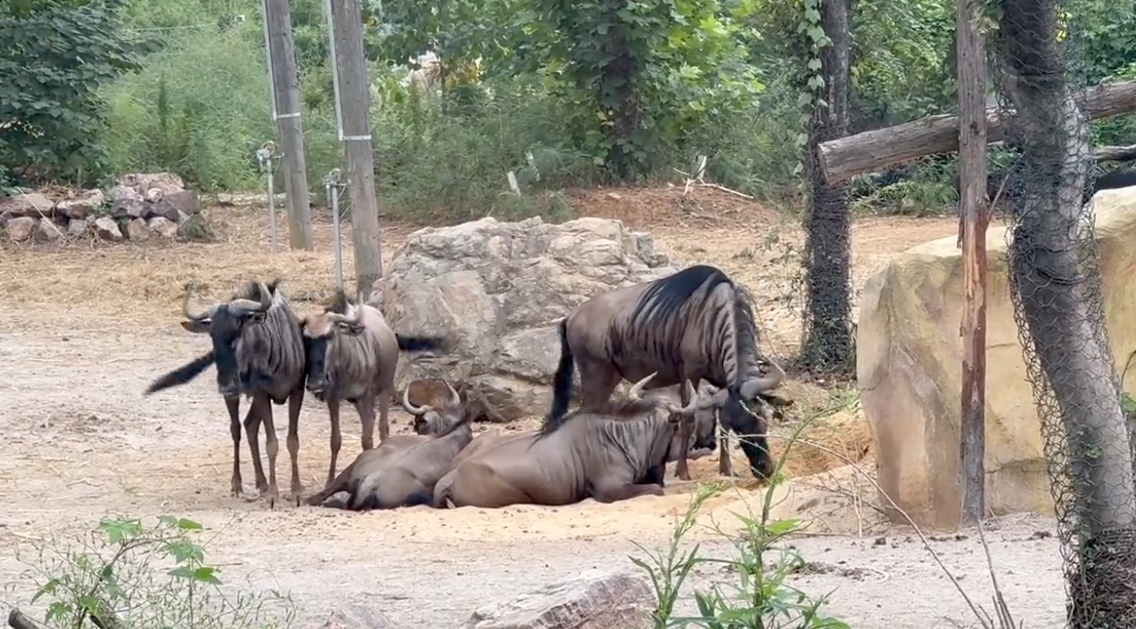没有急着靠近,也没有多余动作,饲养员只是每天不定时的站在笼舍边,安静地陪着他们。有时是和角马们来一场“不说话的对视”,有时只是默默看着他们进食、踱步...让角马慢慢习惯饲养员的存在,一点点卸下对饲养员的戒备,直到他们愿意接受饲养员递来的食物。
