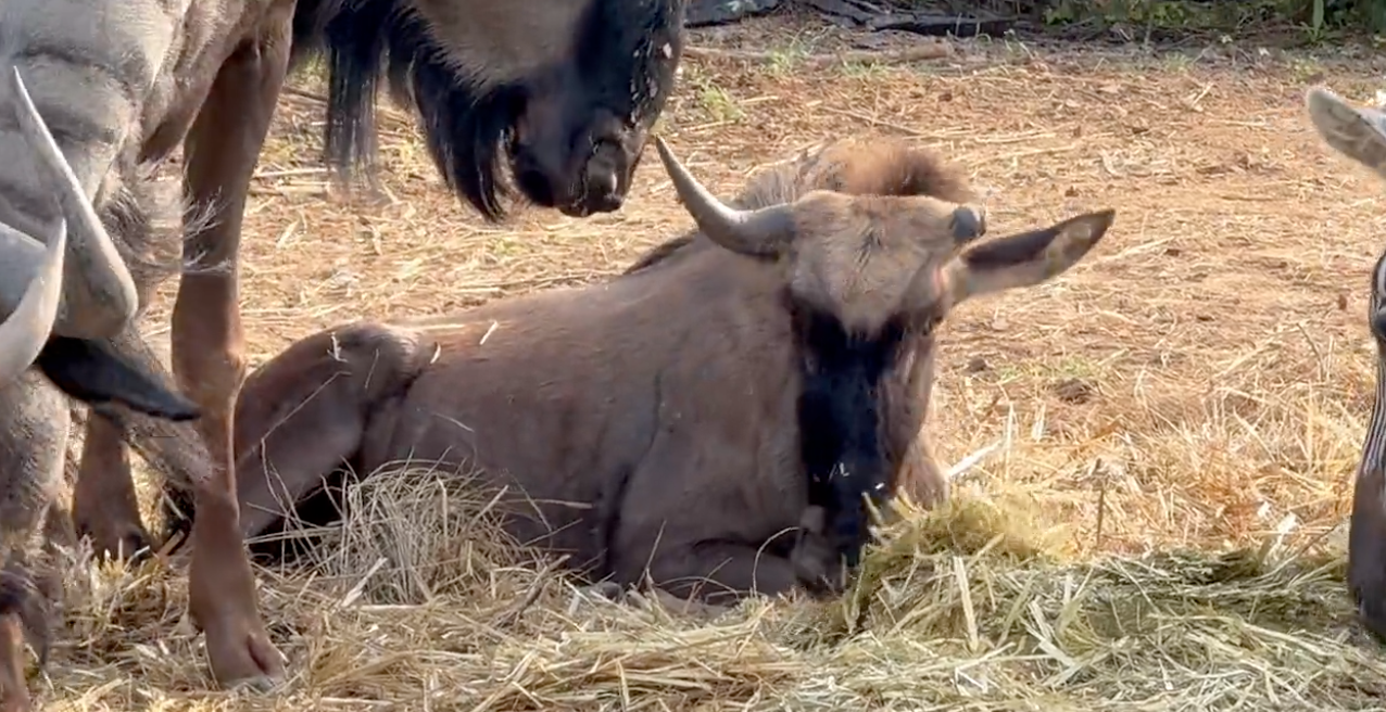 现在的角马,大部分时间都能在外场自由活动。饲养员不怎么“插手”他们的生活,只做“后勤保障”:定期添沙子、铺垫料,保证场地干净安全;及时补充鲜草、羊草、燕麦草这些食物,合理分配摆放等等,把“场地使用权”完完全全交给角马。