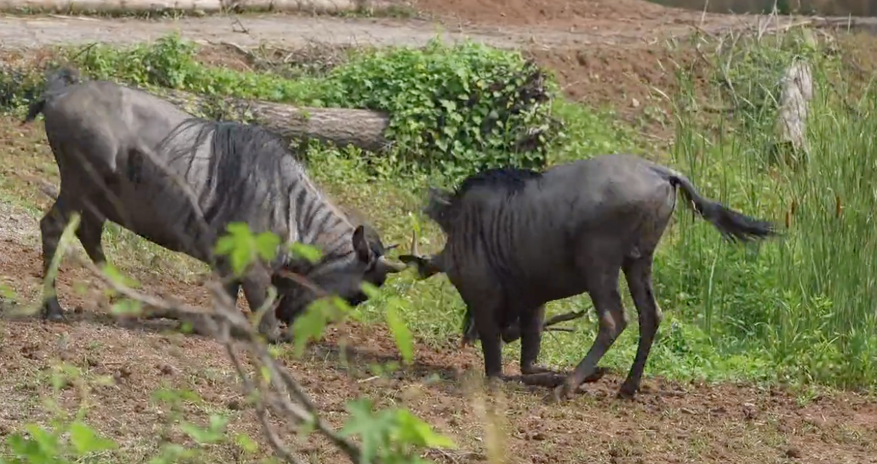 除了这个操作,角马的情绪表达也特别直白:高兴时,他们会在地上打个滚,连奔跑都带着“蹦跳”的劲儿;紧张时,跑起来像离弦的箭一样“弹”出去;要是生气着急了,还会用蹄子使劲跺脚...还有许多等你来发现!