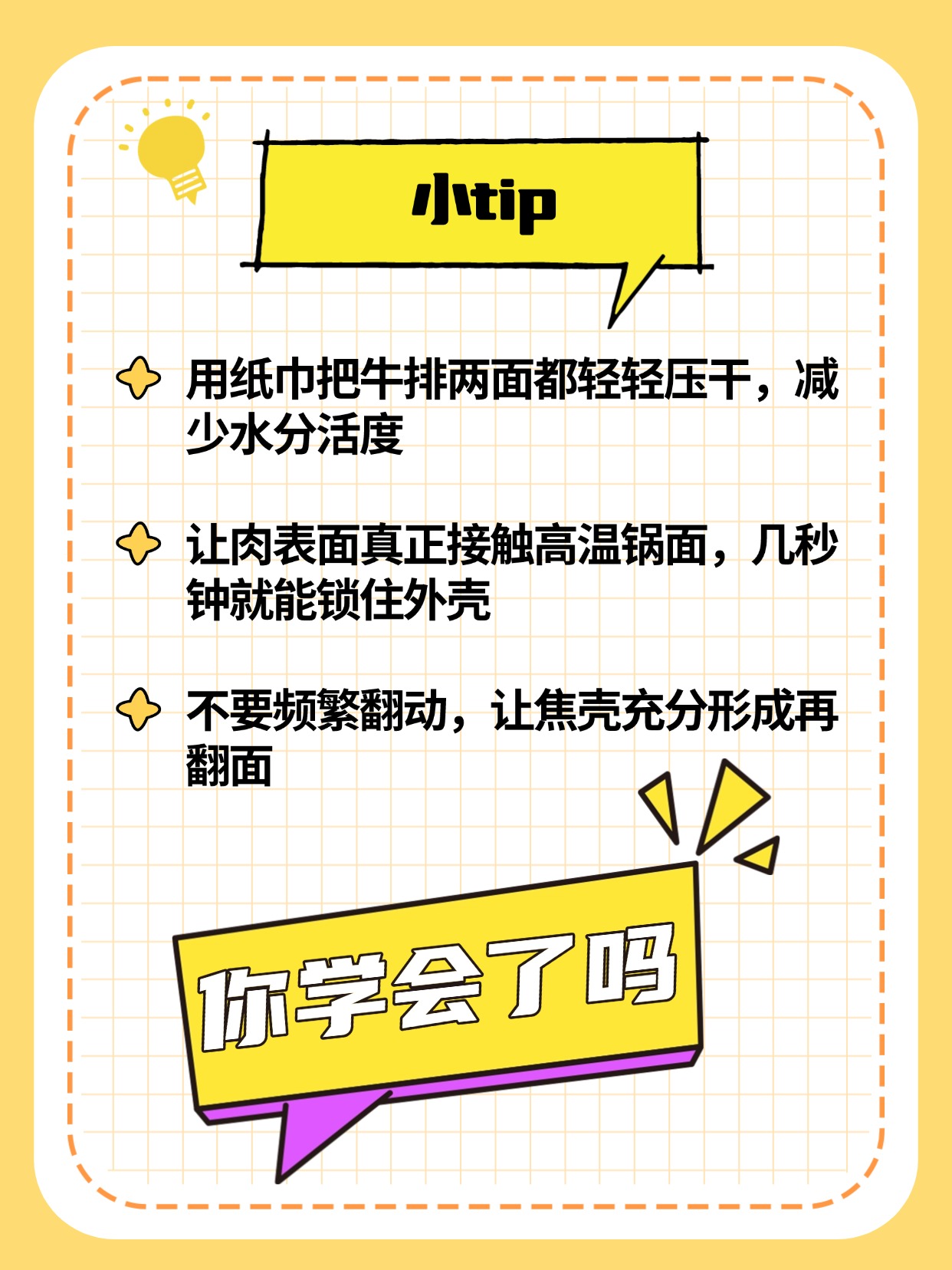 所以下次煎牛排前,别忘了拿纸巾轻轻一按,这就是你和专业厨师之间的差距。😉