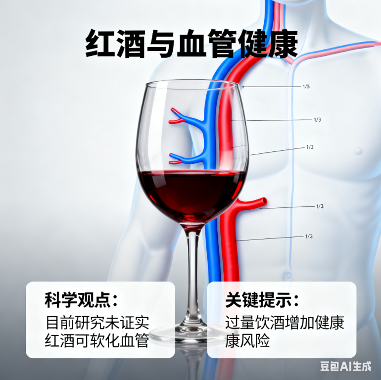 一直以来,“喝红酒软化血管” 的说法流传甚广,不少人将红酒当作日常养生选择,甚至刻意靠饮酒养护血管。但这一说法是否有科学依据,喝红酒真能达到护血管效果?答案或许和你想的不一样。