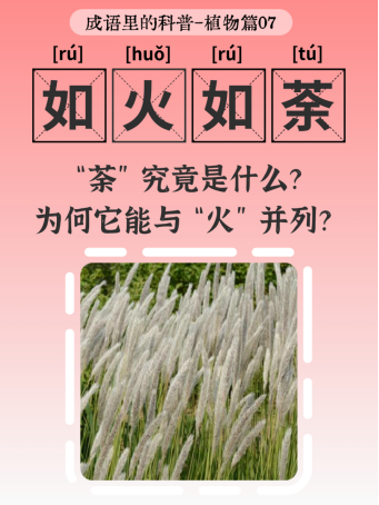 这里“荼”指的可不是茶树,而是一种在春夏之间盛放白色絮状花的茅草。成片盛开的茅草花序在阳光下洁白如雪,远远望去像铺满大地的白海,加上红甲士兵的火焰般颜色,于是古人取“荼”之极白与“火”之极红并列,用以展现军队排布的壮阔气势。