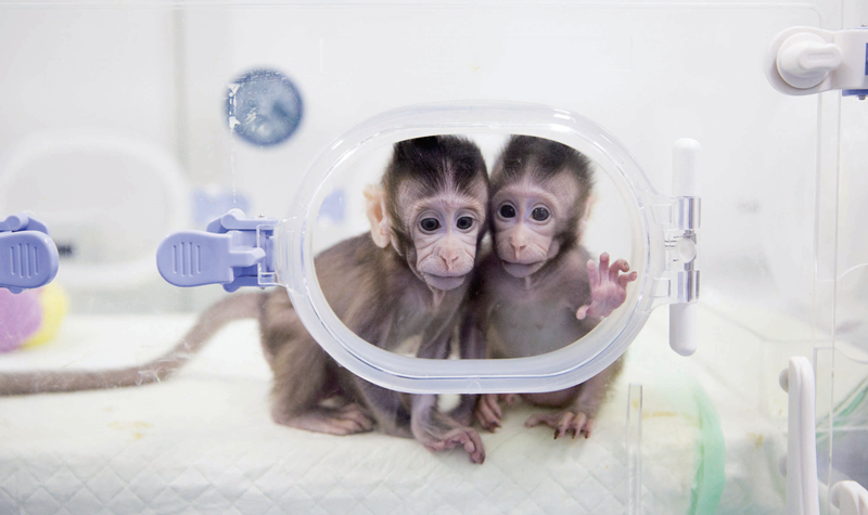 ▲2017 年11月27日世界上首个体细胞克隆猴“中中”诞生; 12 月5 日第二个克隆猴“华华” 诞生,标志中国率先开启了以体细胞克隆猴作为实验动物模型的新时代(图片来源/ 新华社)