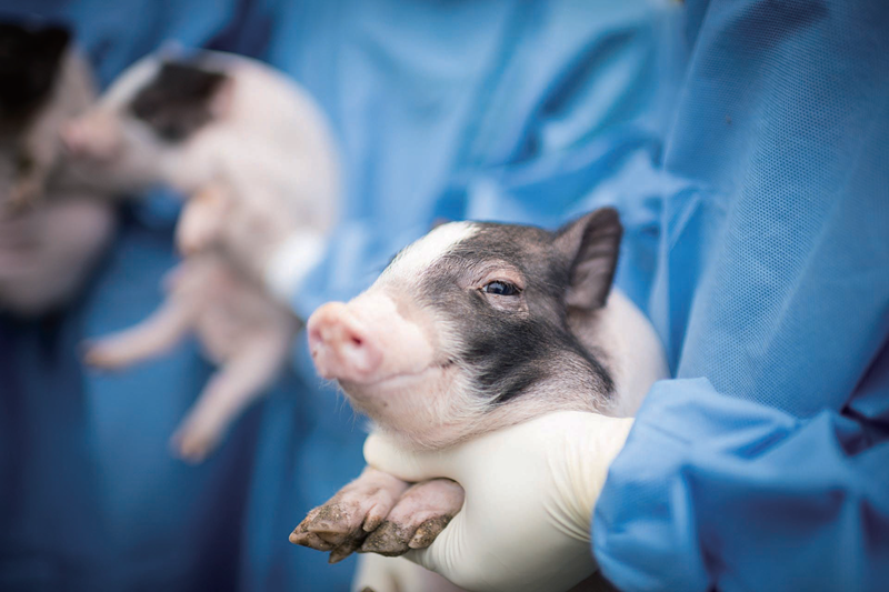 ▲2018年,世界首例亨廷顿舞蹈病基因敲入猪能精准模拟出人类神经退行性疾病,为治疗亨廷顿舞蹈病、老年痴呆等疾病提供稳定、可靠的动物模型,推动药物筛选和治疗方案制定。(图片来源/新华社)