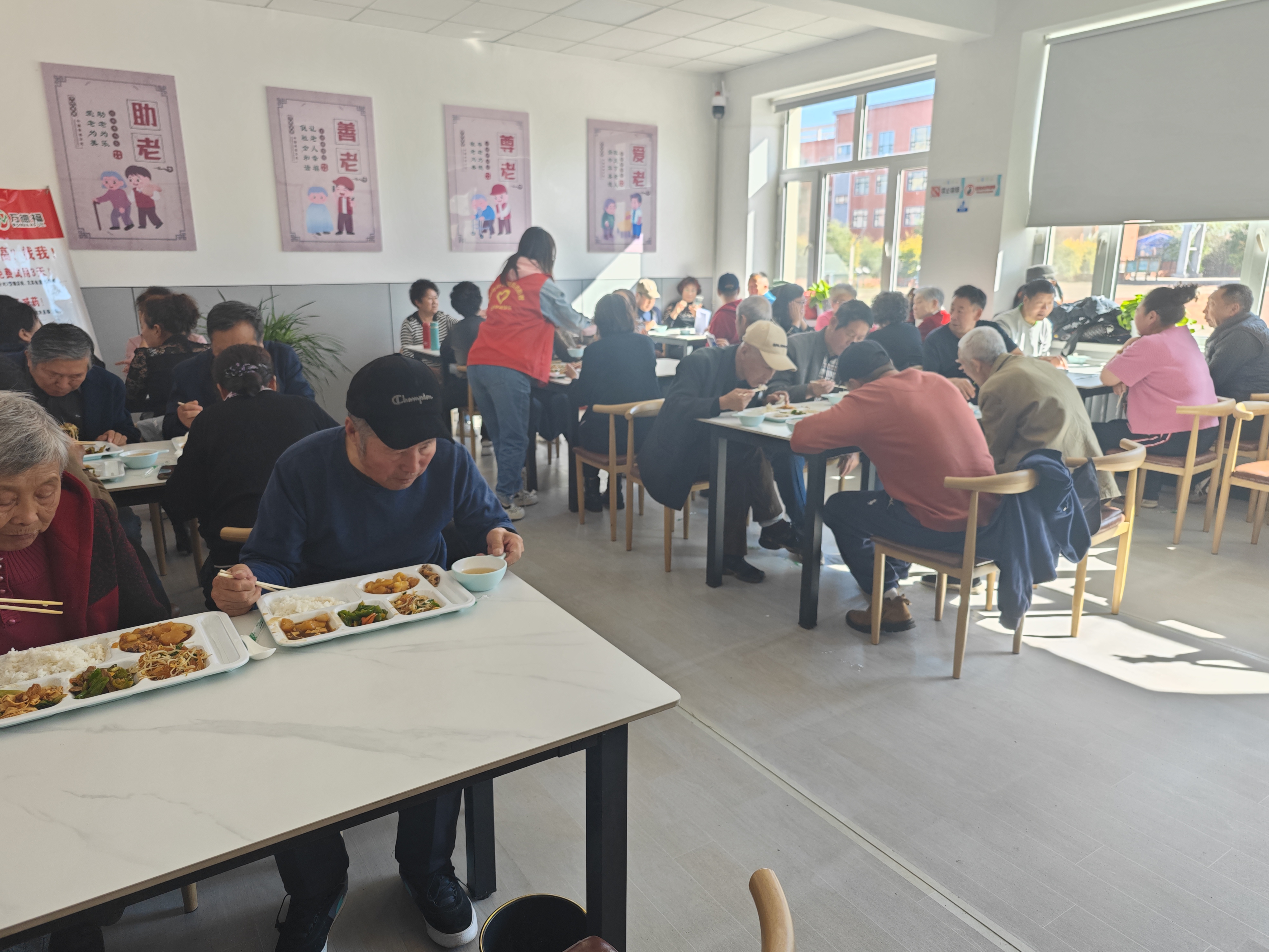 福前社区在重阳节当天为老年人提供免费餐食,一大早,福前社区的助老餐厅爱心食堂按照食谱开始准备食材,厨房内井井有条,煎炒烹炸、锅铲翻飞、香气四溢,不一会,鸡肉土豆、辣椒炒肉等菜品逐一摆上窗口,老人们津津有味地品尝着喜欢的菜品,每个人的脸上都洋溢着幸福的笑容。