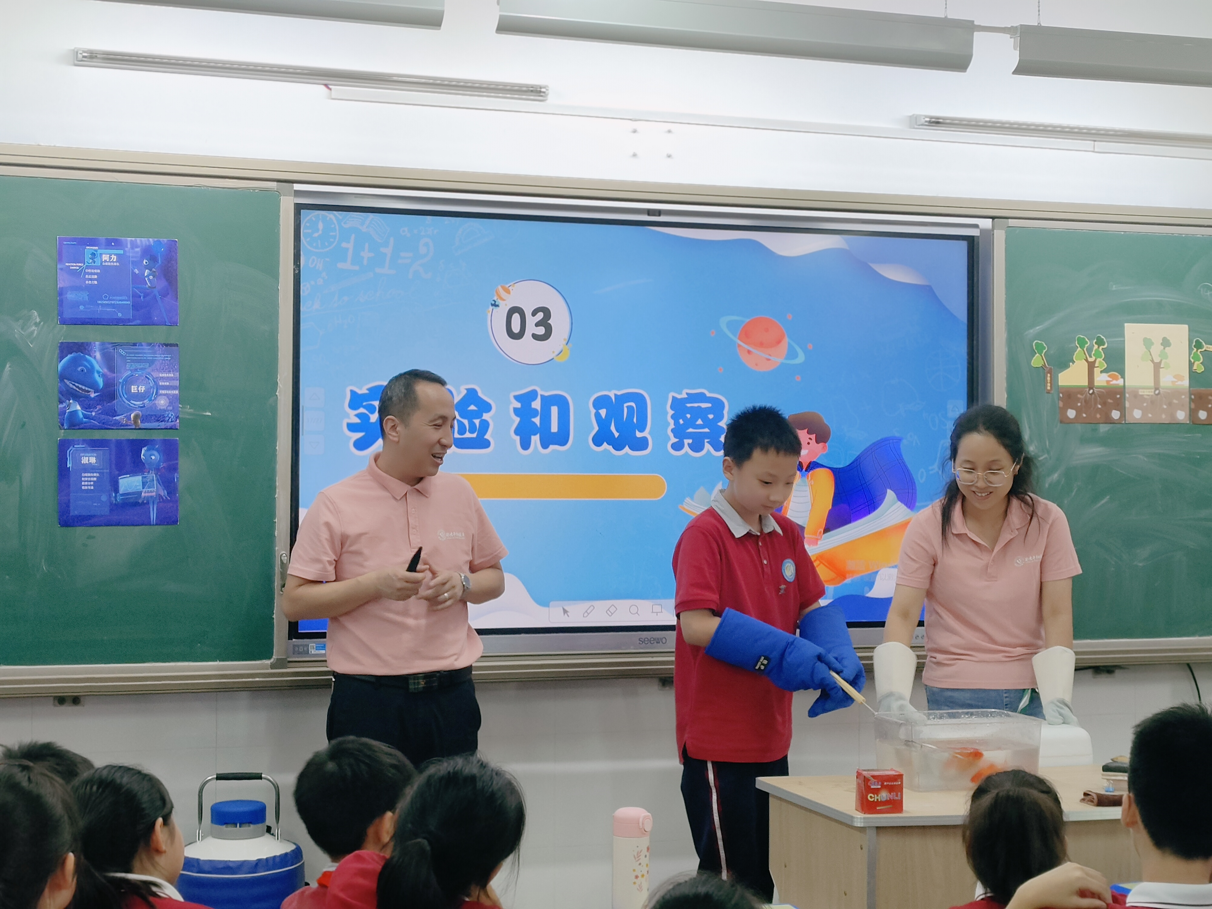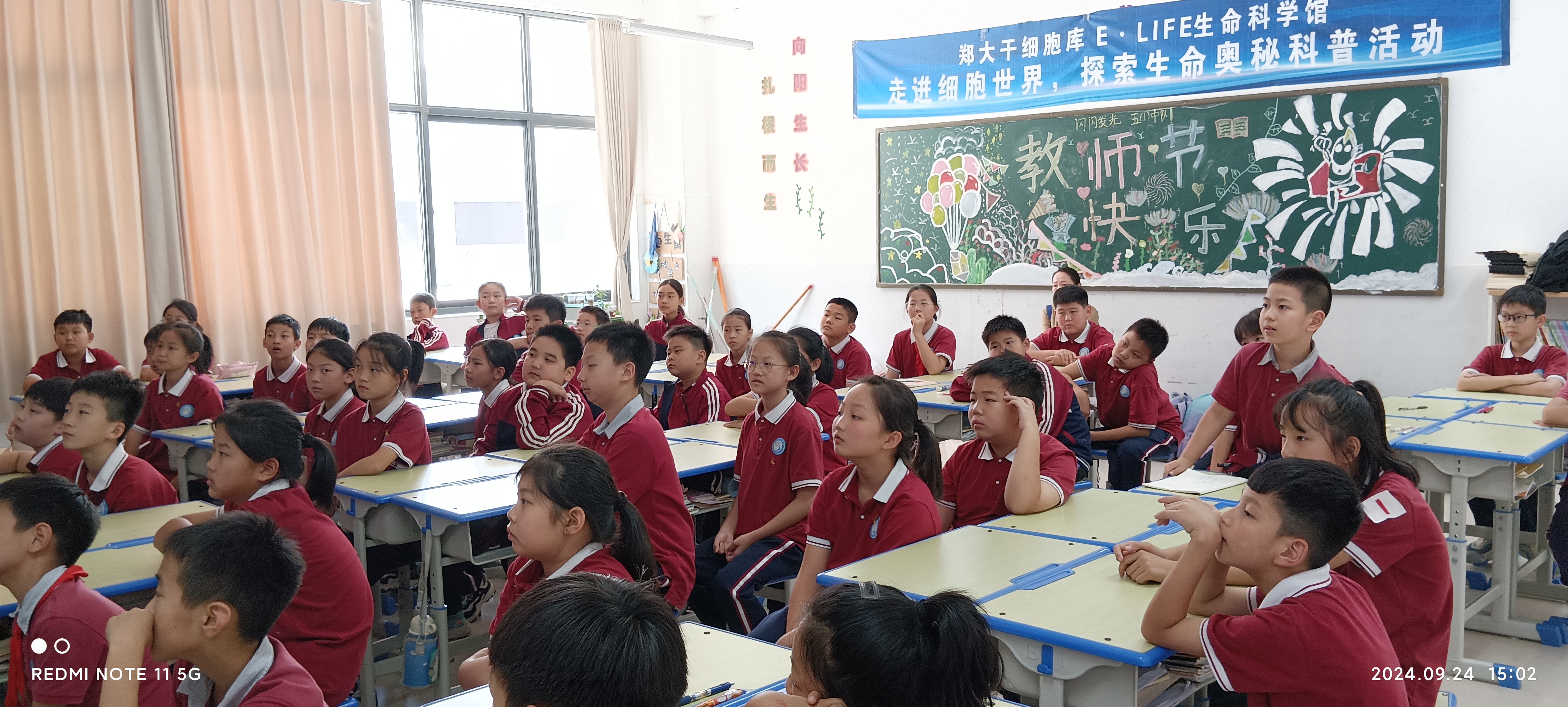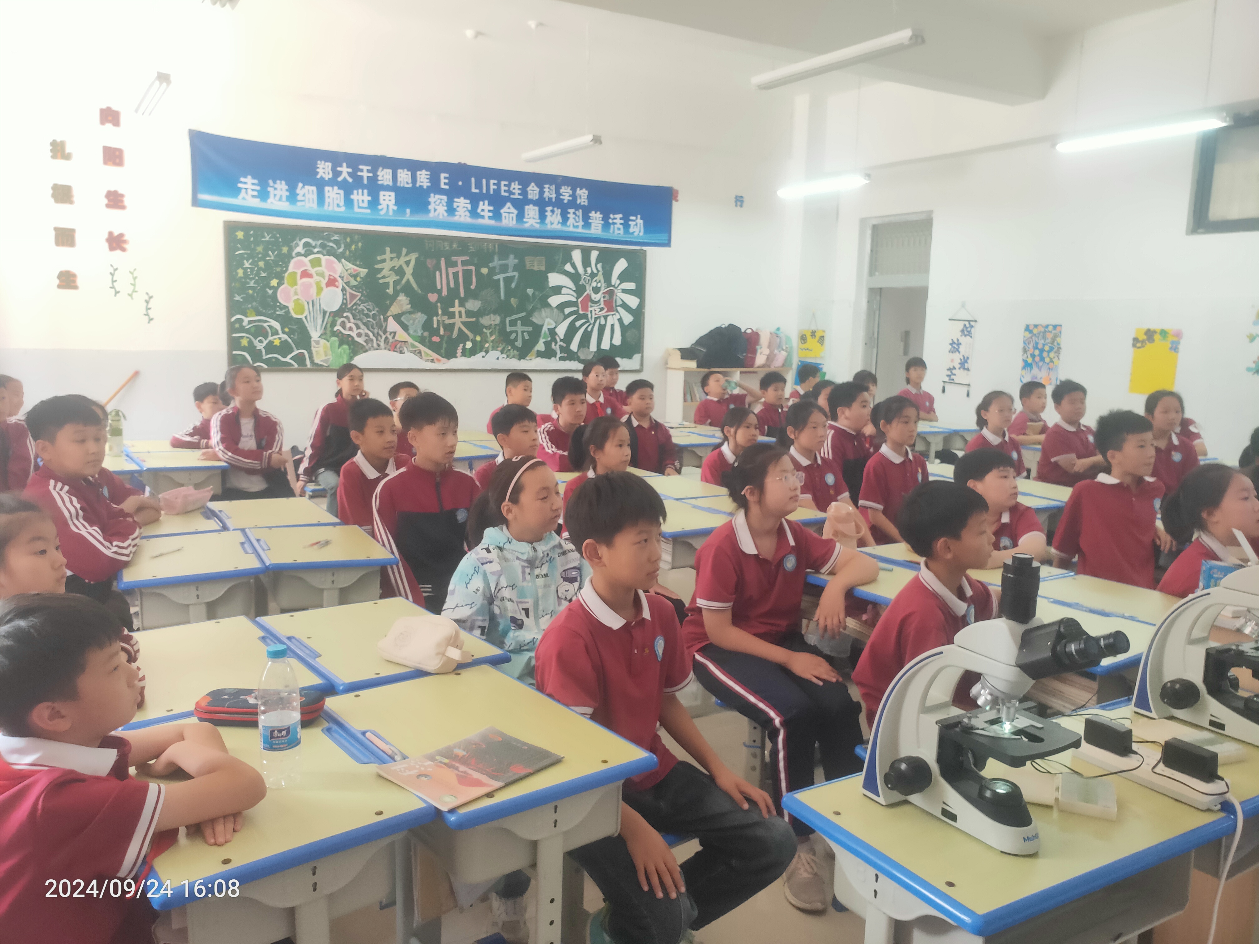 9月24日,全国科普日期间,郑大干细胞库E·LiFE生命科学馆走进郑州航空港区实验小学启园五一班,开展“走进细胞世界 探索生命奥秘”进校园专题科普活动,带领60余名五年级学生“沉浸式”探索细胞世界,感受细胞的奥秘,通过科普讲解干细胞、免疫细胞等有关知识;VR体验神奇的细胞世界;开展趣味科学实验——液氮深低温“冻鱼”复活实验;显微镜观察细胞切片;手绘细胞形态图等,激发青少年学生好奇心,满足青少年学生的求知欲,让青少年学生感悟生物科技的魅力。
